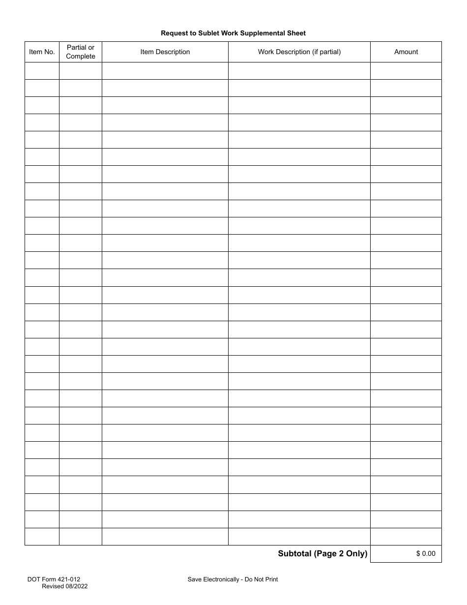 Download a fillable version of DOT Form 421-012 by clicking the link below or browse more documents and templates provided by the Washington State Department of Transportation.