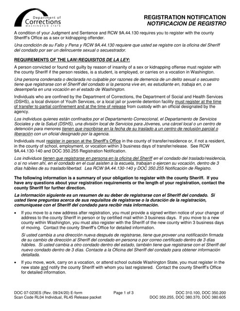 Download a printable version of Form DOC07-023ES by clicking the link below or browse more documents and templates provided by the Washington State Department of Corrections.