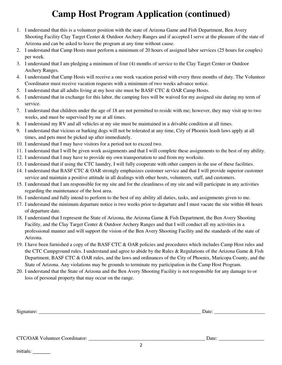 Camp Host Program Application is a legal document that was released by the Arizona Game and Fish Department - a government authority operating within Arizona.